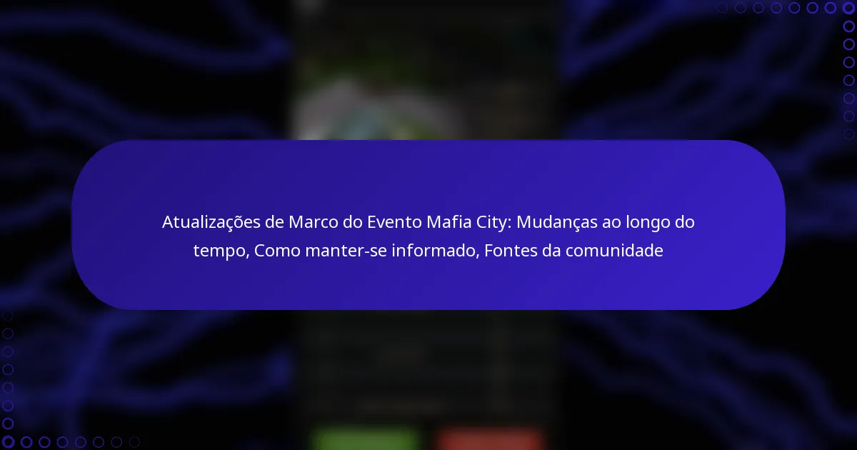 Atualizações de Marco do Evento Mafia City: Mudanças ao longo do tempo, Como manter-se informado, Fontes da comunidade